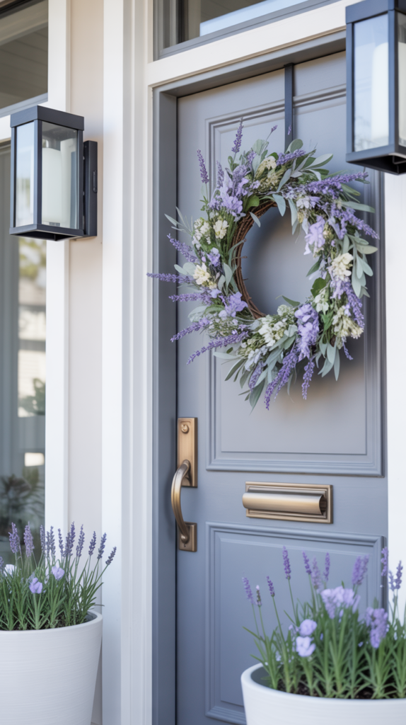 Lavender wreaths bring a calming, spa-like energy into your home that feels especially perfect in spring. The soft purple tones mixed with greenery create a look that’s soothing, elegant, and slightly romantic. These wreaths don’t feel overly floral — instead, they feel relaxed and refined, like a countryside escape.