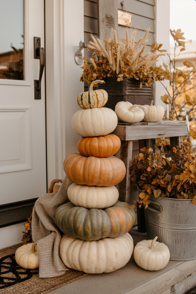 Last year, I tried stacking them by the door in a gradient of shades. Honestly, it looked way more intentional than my usual pumpkin pile-up.